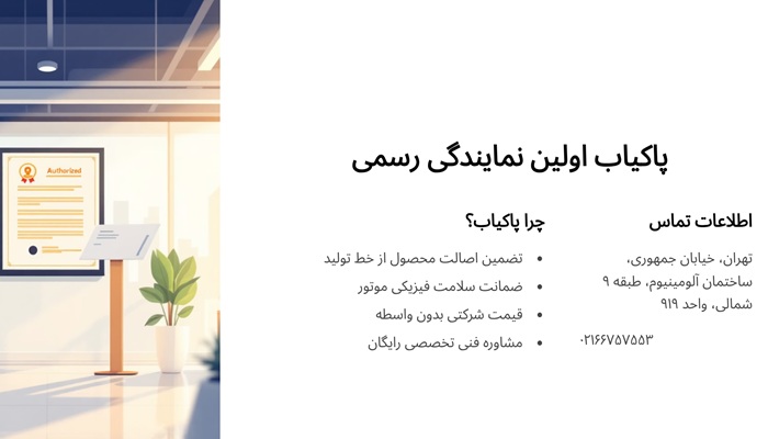 | پاکیاب | نمایندگی موتور جاروبرقی روسو، فروش مستقیم موتور و قطعات | تضمین اصالت موتور، ضمانت سلامت فیزیکی، قیمت شرکتی، مشاوره فنی تخصصی | تهران، خیابان جمهوری، ساختمان آلومینیوم، طبقه ۹ شمالی، واحد ۹۱۹ | ۰۲۱۶۶۷۵۷۵۵۳ – ۰۲۱۶۶۷۵۷۵۵۴ |